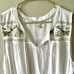 CJ Banks Green Floral Embroidered Tank Top Size 2X Boho Coastal Festival