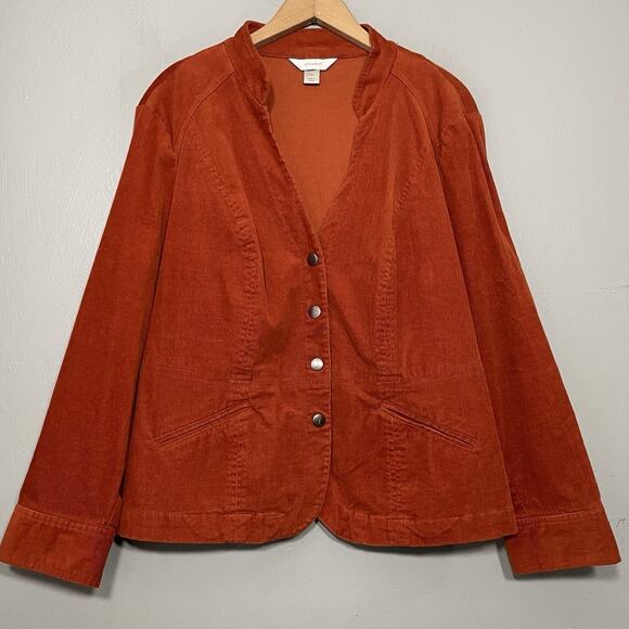 CJ Banks Jacket Plus Size 1X Burnt Orange Stretch Corduroy Collarless Country