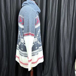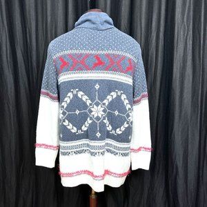 CJ Banks Knit Cowl Neck Sweater 1X Reindeer Snowflake Fair Isle Holiday Winter
