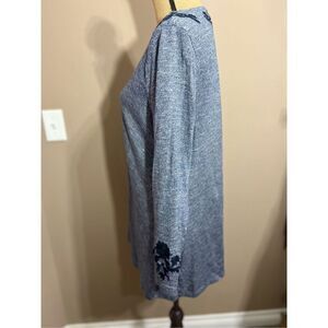 CJ Banks Knit Top Size 1X Heather Blue Pockets Long Sleeve Embroidered Tunic
