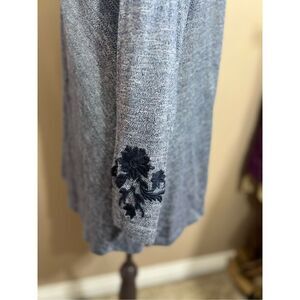 CJ Banks Knit Top Size 1X Heather Blue Pockets Long Sleeve Embroidered Tunic