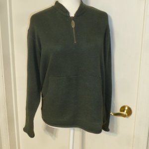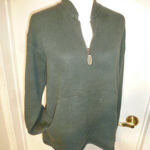 GREEN Vintage looking sweater w/ 1/4 zip detail provides both function and style.