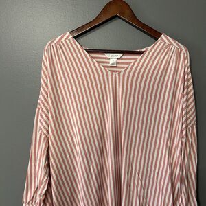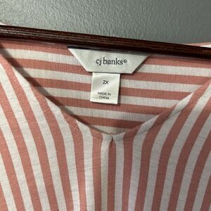 CJ BANKS Top Size 2X Linen Blend Striped Beachy Relaxed Fit Casual Soft Womens