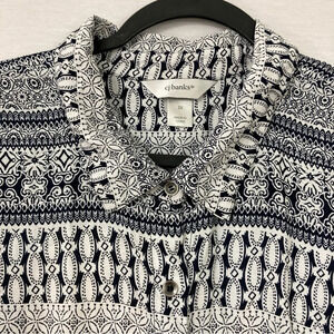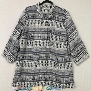 CJ Banks Multi Color Floral Black Ultra Soft Rayon Button Down 2X