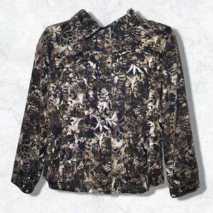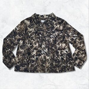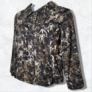 CJ Banks NWT Floral Black & Tan Long Sleeve Button-Up Blouse