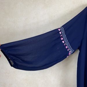 CJ Banks Navy Embroidery sheer blouse top Sheer 1X Elastic Waist 3/4 Sleeve