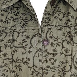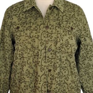 CJ Banks Olive Green Jacquard Vine Jean Jacket