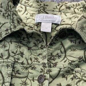CJ Banks Olive Green Jacquard Vine Jean Jacket 1X NWOT