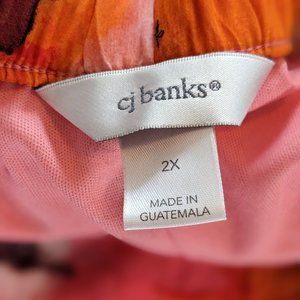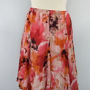 CJ Banks Orange and Pink Floral Elastic Waist Skirt