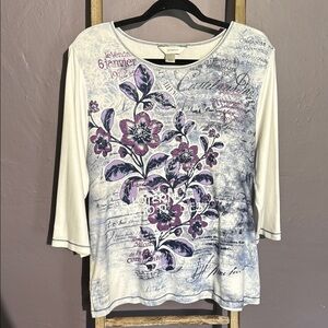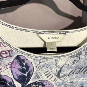 CJ Banks Paris-Inspired Floral Script Tee - SMALL SPOT SEE LAST TWO PHOTOS