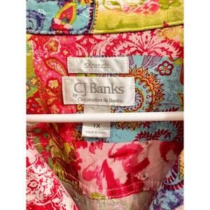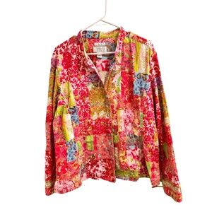 C.J. Banks Multi Color Patchwork Design Embroidered Snap Up Long Sleeves Womens Jacket Plus 1X Coatigan