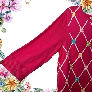 Size 16/18 (1X) This cardigan sweater from CJ Banks adds a vibrant touch to any wardrobe. Made from 100% cotton, it features a stylish diamond pattern with colorful beaded floral accents.