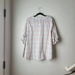 CJ Banks Plaid V-Neck Popover Blouse