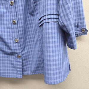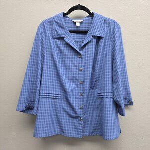 CJ Banks Shirt Womens 1X Blue Plaid Button Up 3/4 Sleeve Textured Lightweight