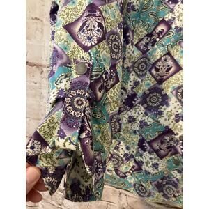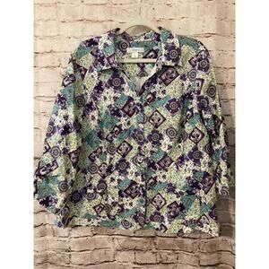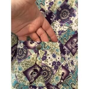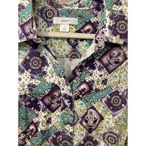 CJ Banks Shirt Womens 1X Turquoise Purple Paisley Shacket Button Up Plus Cotton