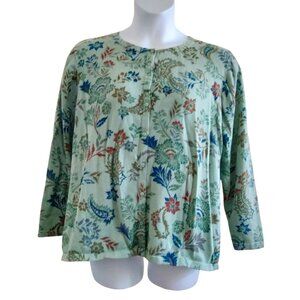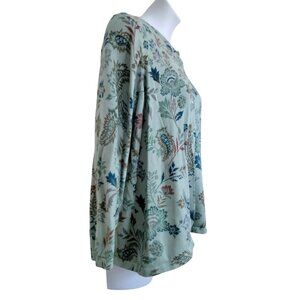 women's cardigan, floral print, plus size 2X, knit fabric, lightweight top, casual chic cardigan, green floral, CJ Banks cardigan, women's fall sweater, breathable knit top, button-front long sleeve, feminine style blouse, boho-inspired cardigan