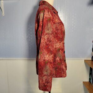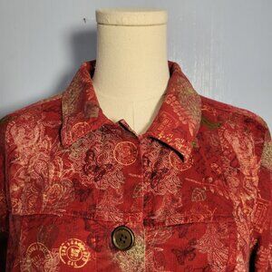 C.J. Banks Size X Red Green Butterfly Patchwork Button Up Lightweight Jacket