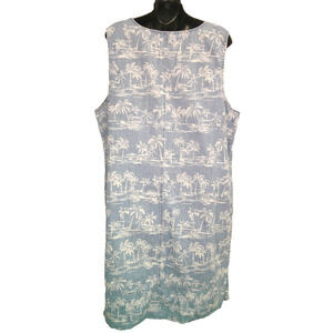 C.J. Banks Sleeveless Shift Jean Dress with White Palm Trees Women's 2X