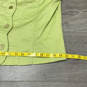 CJ Banks Stretch Scalloped Edge Green Jacket in size X (14W). Excellent pre-owned condition. Please see photos for approximate measurements and details. Item may show a difference in color based upon photography and perception. Photos are part of the description, as everyone’s level of condition may vary. From smoke free and pet free home. All packages are shipped the same or next business day.