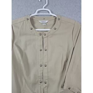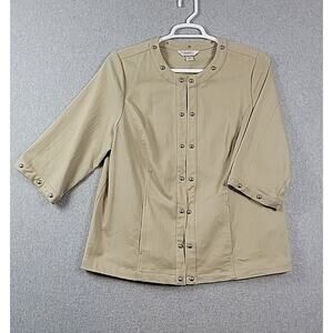 CJ Banks Tan 3/4 Sleeve Studded Jacket Women's Plus 1X Pockets Stretch