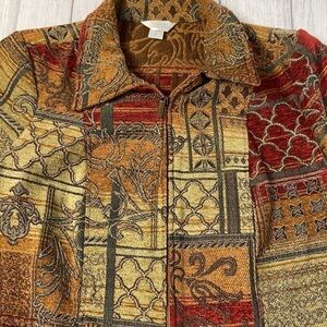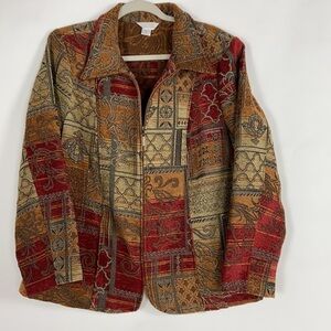 Excellent Condition Vintage C.J. Banks by Christopher & Banks Long Sleeve Patchwork Tapestry Full Zip Jacket.