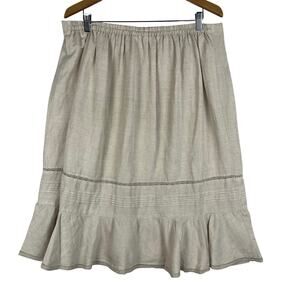 CJ Banks Tiered Skirt Women 18W Natural Beige Linen Rayon Elastic Waist Ruffle