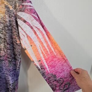 CJ Banks Top Women's 2X Pink Multi Abstract Rhinestone Coastal Casual Festival party Summer beachy boho colorful career workwear