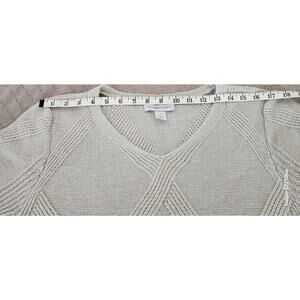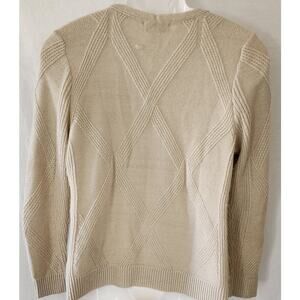 CJ Banks VTG Y2k Beige Textured Diamond Pattern V Neck Long Sleeve Pullover W Sm