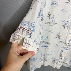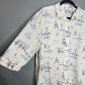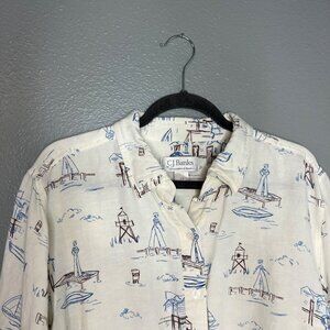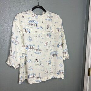 CJ Banks Vintage Top Size 2X Novelty Boat Ship Boxy Button Front Collared