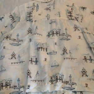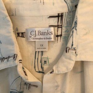 CJ Banks White Ship Patterned Button down Quarter sleeve
