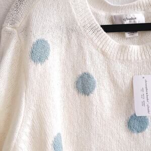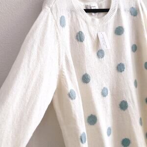 CJ Banks Women Plus Size 3x White Blue Polka Dot Knit Sweater NEW Soft Whimsy