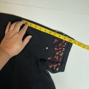 CJ Banks Womens Cardigan Sweater Black Linen Cotton Blend Floral Embroidery 2X