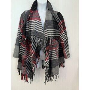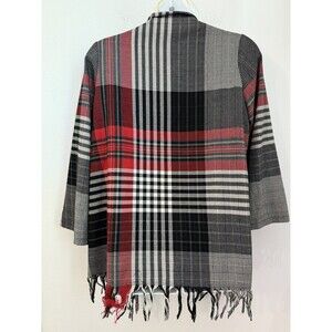 CJ Banks Womens Jacket Plus Size 1X Red Plaid Patchwork Fringe Boho Pockets Wool