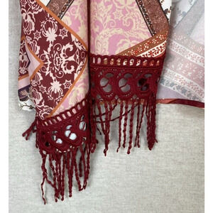 CJ Banks Womens Patchwork Floral Sleeveless Vest Size 2X Boho Fringe Kimono