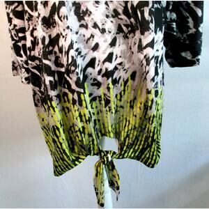 This shirt is black & white with yellow on the bottom. It also ties on the bottom.