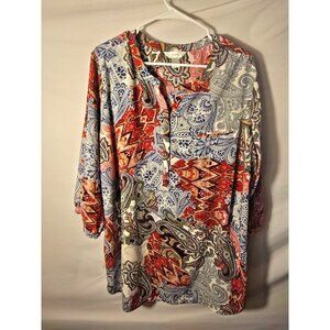 CJ Banks Womens Plus Size Tunic Top Shirt Blouse Vneck Boho Paisley Vibes 3X