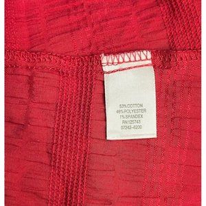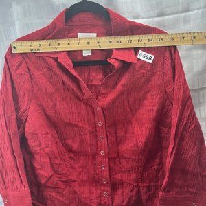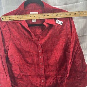 This CJ Banks women's red blouse is a must-have for your wardrobe. With its size X, snap button, collared, 3/4 sleeve design, it's perfect for a classy, basic style.