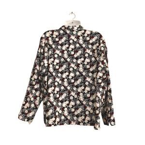 CJ Banks Women's Red/Black Floral Linen Blend Button-Up Shirt Casual SZ 1X