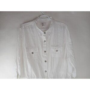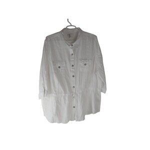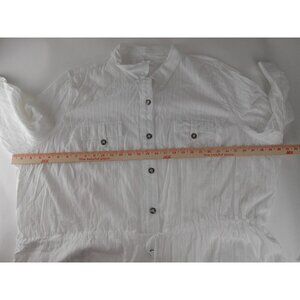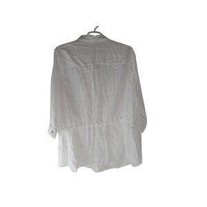 CJ Banks Womens Shirt Top White Button Up Drawstring Waist Cotton Size 5X Plus