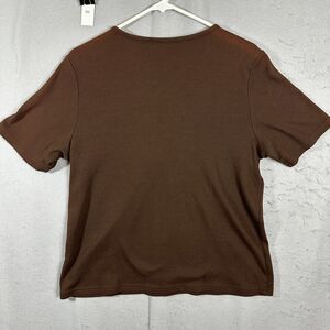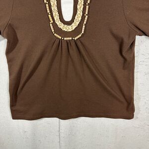 CJ Banks Womens Short Sleeve Top Blouse Brown V Neck Pullover Plus Size X