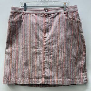CJ Banks Women's Size 18W Colorful Pink Denim Mini Pencil Skirt Striped Stretch