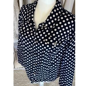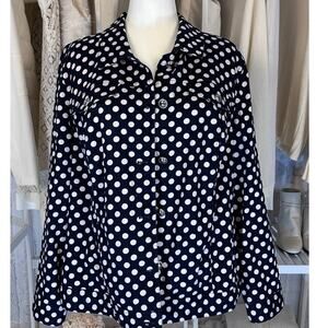 CJ Banks Women's Size 2X Navy & White Polka Dot Button Up Denim Jacket #0167