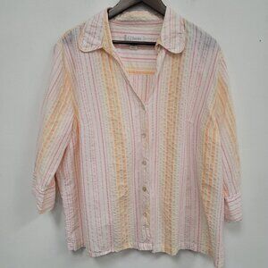CJ Banks Womens Striped Button Up Top Size 2X White 3/4 Sleeve Mature Office