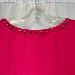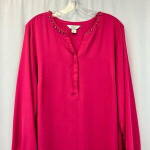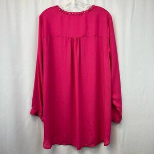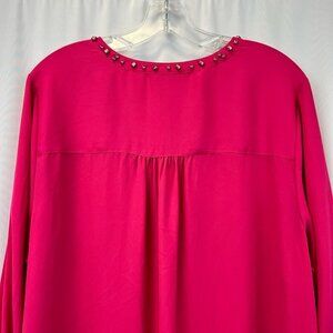 CJ Banks Womens Tunic Top Pink Long Sleeve V Neck High Low Bling Solid Plus 1X
