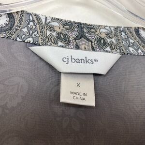 CJ Banks Women's V-Neck Tunic Top Size X Gray Lined Elastic Smocked Waistband