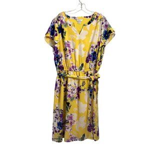 CJ Banks Yellow Floral Print Dress Belt MIDI XL Sundress Size X
