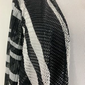 CJ Banks womens cardigan black White hand long sleeve Size X beautiful mesh. Can be used as bathing suit cover too