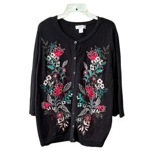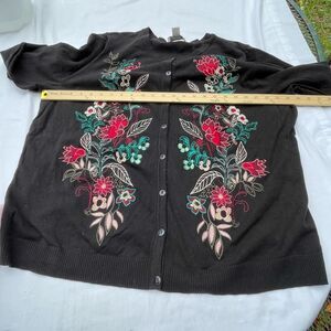 CJ Banks size 2X embroidered front floral cardigan . This is a very dark brown in color. Gently worn. Cottagecore , boho