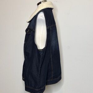 CJ Banks size 3X Denim Vest with White sherpa Collar