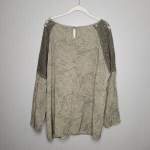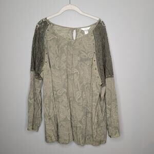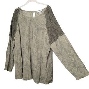 CJ Banks top women's size 3X green floral lace paisley print flowy boho shirt